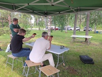 Pohjankankaan Tykistökilta oli mukana läheistenpäivänä Niinisalossa 13.7.2025. Killan pisteessä myytiin makkaraa ja muuripohjalättyjä. Tuotolla kartutetaan killan stipendirahastoa. Killalla oli myös ekoaseammuntapiste, joka kiinnosti monia. Kuvat: Sirkka Järvenpää-Soini